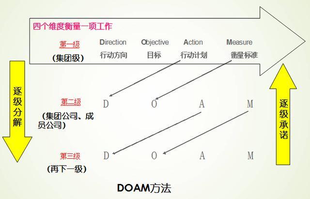 - 下一級目標(O)是上一級對應行動計劃(A)的衡量標準(M)。